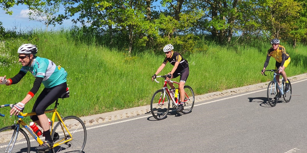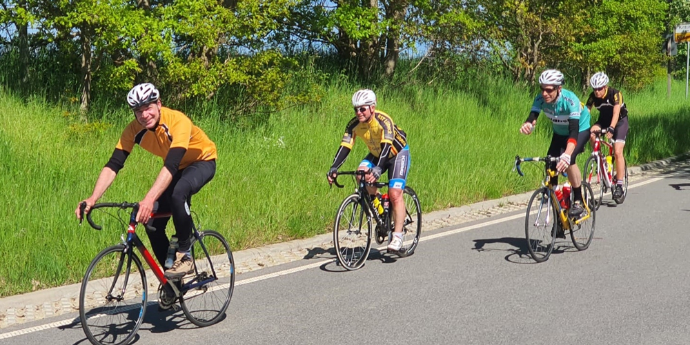 Wir fahren ein moderates Tempo und warten auf alle. Das Tempo ergibt sich dann aus dem Leistungsniveau der Teilnehmenden.