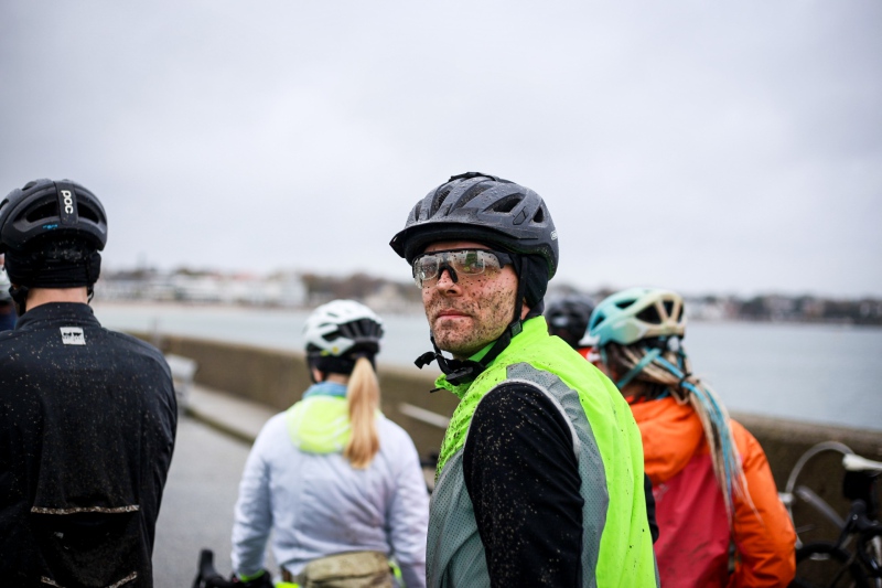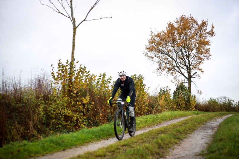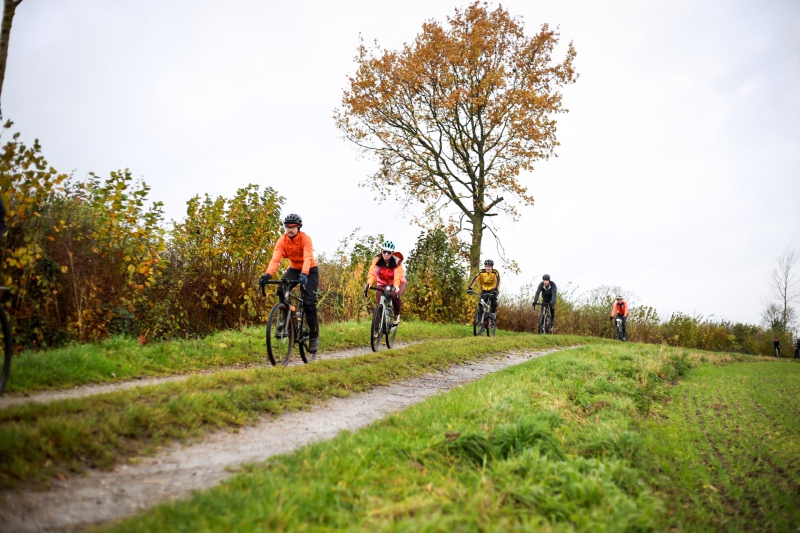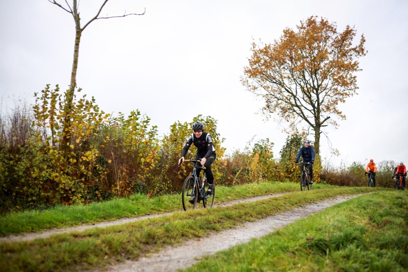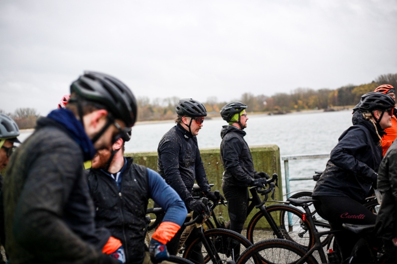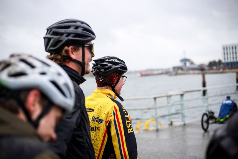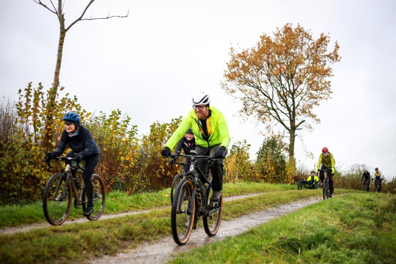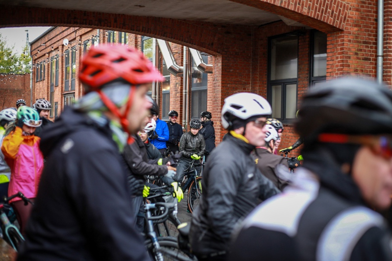 Alle anderen Teilnehmer entschieden sich für den 53 Kilometer langen Socialride „Die Tour mit Aussicht“ Diese führte durch den Bad Schwartauer Kurpark Richtung Riesebusch. Über ein paar Baumwurzeln, dicken Laubschichten und durch große Pfützen ging es durch den ansonsten stillen Wald. Weiter ging es dann über Ratekau bis Groß Timmendorf auf einer ruhigen Nebenstraße. Nach ca. 3 Kilometern dann kam eine große Spitzkehre und es ging weg vom asphaltierten Weg auf die landwirtschaftlich genutzten Feldwege. Hier war die Freude aller Teilnehmer groß. Denn es kamen große Pfützen und tiefer Matsch. Es war die matschigste Passage der Tour. Wir überquerten einen Bauernhof, der Landwirt stand draußen und wunderte sich über die große Gruppe und schmunzelte ein wenig, da wir alle schon ziemlich schmuddelig aussahen. Er wünschte uns weiterhin viel Spass und gutes Gelingen.
