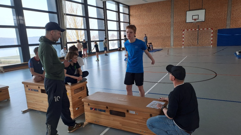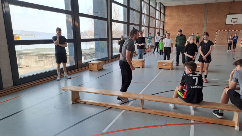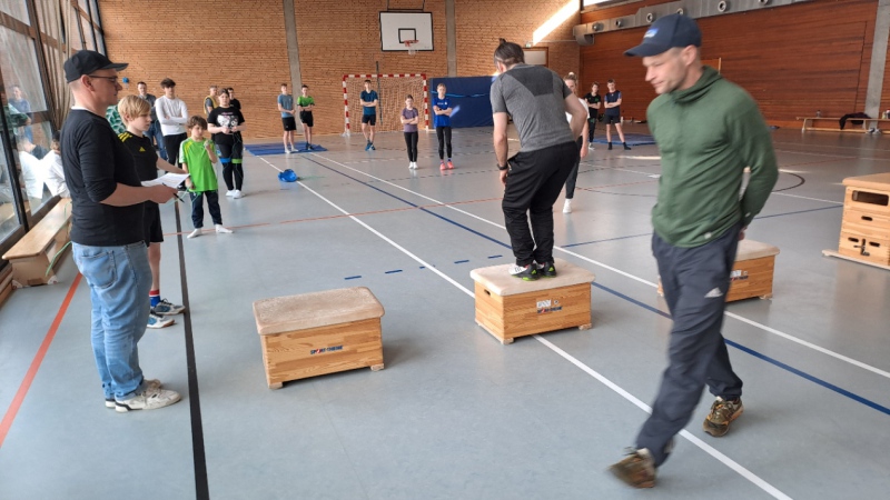 Für alle Teilnehmer begann der Tag um 08:00 Uhr mit dem Frühstück. Gut gestärkt wurden die Zimmer geräumt und anschließend stand der Athletiktest für alle Sportler an. Zwischen 09:30 Uhr und 11:30 wurde an sieben verschiedenen Stationen die Tests abgenommen. Dank der vielen Betreuer und sechs Sportlergruppen funktionierte es alles perfekt und wir waren zeitlich auch hier voll im Plan!