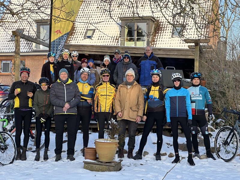 Am 11. Januar 2026 trafen sich 24 Vereinsmitglieder zum Neujahrsgrillen des Radsport Team Lübeck e.V. in Stockelsdorf. Bei Glühwein, Kaffee und Bratwurst wurde über die anstehende Radsportsaison 2026 gesprochen und man konnte sich einen weiteren RST Winter-Cup Punkt sichern. Diesmal durften wir das Neujahrsgrillen auch mit reichlich Schnee und –4 °C erleben und nicht wie in den Jahren zuvor bei Nieselregen. Alle waren froh, dass wir bei Axel im Carport ein warmes und trockenes Plätzchen hatten. Auf der Terrasse glühte der Ofen und der Grill sorgte für angenehme Wärme. Am Mittag starteten einige Radsportler zur Graveltour nach Stockelsdorf. Gut durchgefroren konnten sich die Sportler bei Axel wieder aufwärmen. Zum bunten Mitbring-Büffet gab es allerlei leckere Sachen für die Vereinsmitglieder. Ein „Dankeschön“ an Axel, der uns ermöglichte, gemeinsam einen schönen Nachmittag zu verbringen.